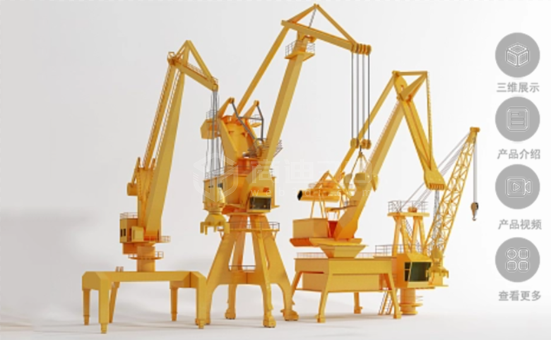 而三维虚拟展示,则将这些效果展示得更为生动和形象。通过三维建模的数据直接展示,无需转化成二维图纸,方便人们快速地了解起重机的结构、功能和性能。多角度的旋转、自由的放大缩小,令人们观感更直观直观,并且能够体验到虚拟现实中现实的感觉。